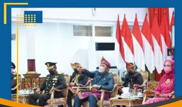 KeizalinNews.com Palembang — Gubernur Provinsi Sumatera Selatan (Sumsel), Herman Deru mengikuti peringatan hari lahir Pancasila tahun 2021 bersama Presiden RI, Joko Widodo secara virtual di Griya Agung Palembang, Selasa (01/06/21).
