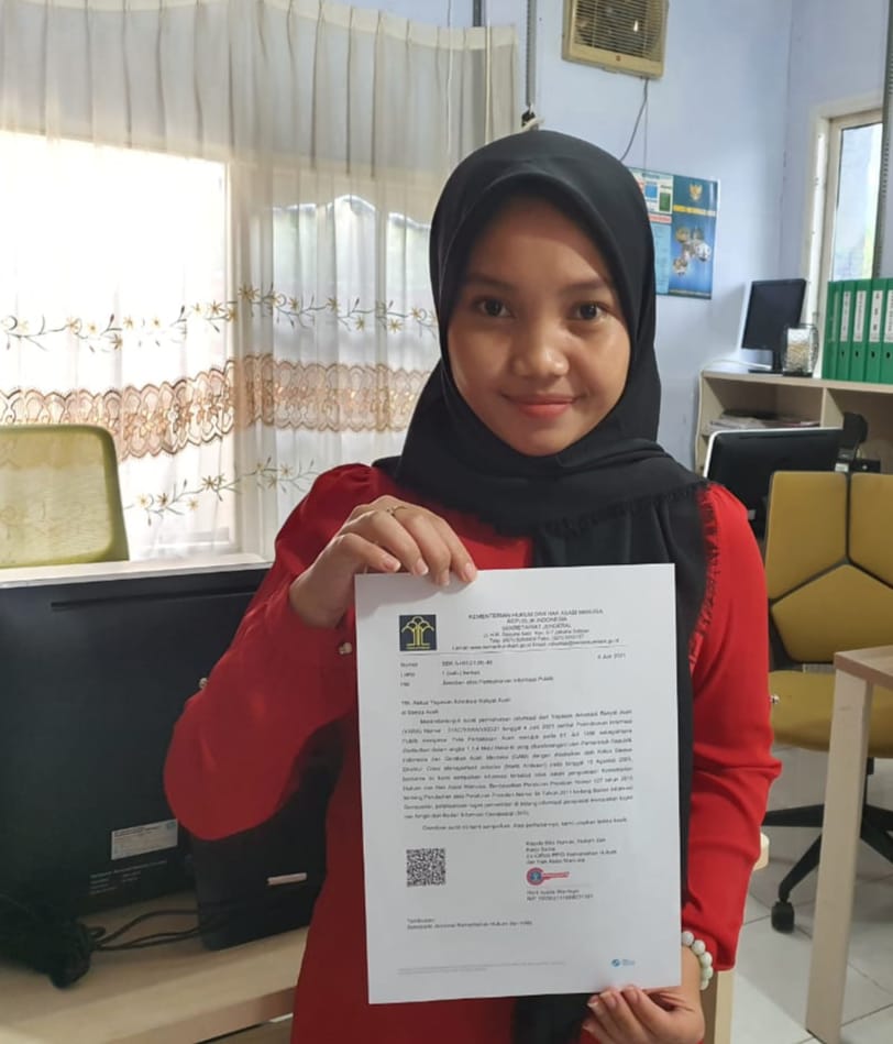 “ Menindaklanjuti surat permohonan informasi dari Yayasan Advokasi Rakyat Aceh (YARA), Nomor : 018C/YARA/VI/2021 tanggal 4 Juni 2021 perihal Permohonan Informasi Publik mengenai Peta Perbatasan Aceh merujuk pada 01 Juli 1956 sebagaimana disebutkan dalam angka 1.1.4 MoU Helsinki yang ditandatangani oleh Pemerintah Republik Indonesia dan Gerakan Aceh Merdeka (GAM) dengan disaksikan oleh Ketua Dewan Direktur Crisis Management Initiative (Martii Ahtisaari) pada tanggal 15 Agustus 2005, bersama ini kami sampaikan informasi tersebut tidak dalam penguasaan Kementerian Hukum dan Hak Asasi Manusia.