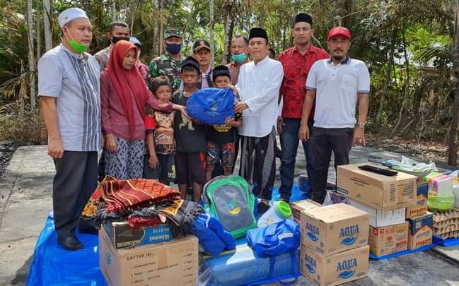 Bantuan tersebut berupa tenda, tempat tidur kasur, keperluan sehari-hari seperti beras, minyak goreng, telor Mie Instan, kain sarung, mukenah sajadah, pakaian serta sejumlah uang tunai.