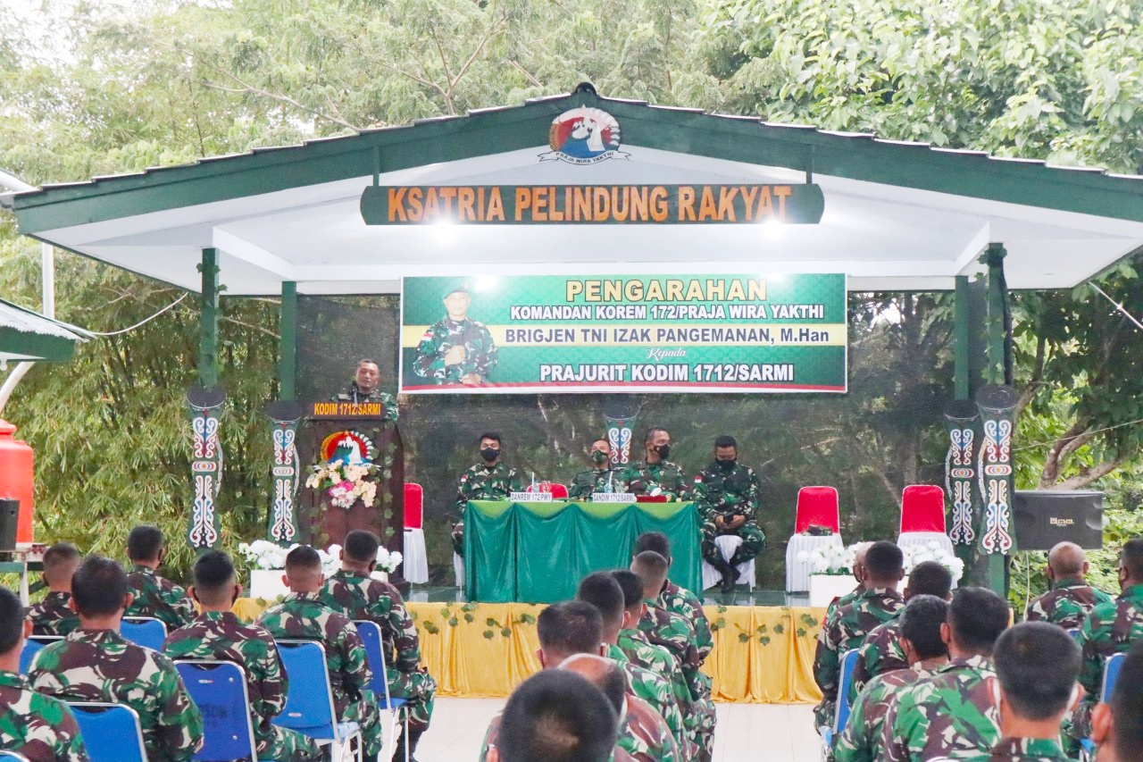 Danrem dalam arahannya di aula Makodim Sarmi menyampaikan bahwa keberadaan Kodim 1712/Sarmi adalah untuk menyelenggarakan pembinaan kemampuan, kekuatan dan gelar pasukan, serta menyelenggarakan pembinaan teritorial di wilayah tanggungjawabnya, yaitu meliputi Kab. Sarmi dan Mamberamo Raya. Dalam pelaksanaannya, hendaknya memahami tentang konflik Papua, yang membedakan pelaksanaan tugas Kodim di Papua dari Kodim di daerah lain di Indonesia.