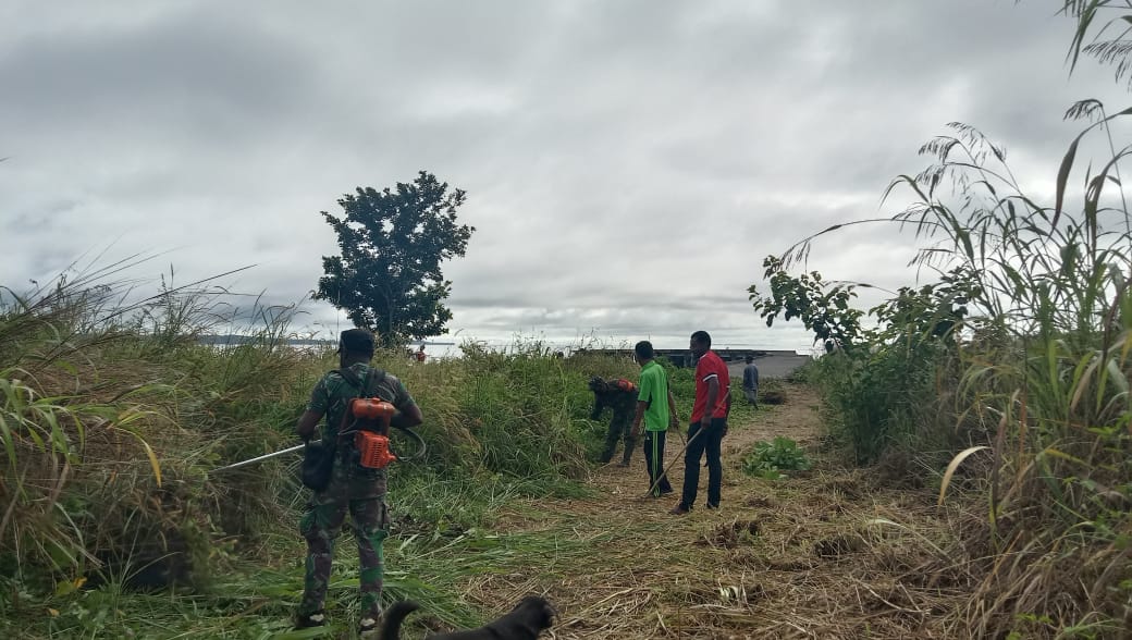 KeizalinNews.com Napan — Babinsa Koramil 02/Napan Sertu Rustam melaksanakan kegiatan karya bhakti pembersihan lingkungan di Kampung Napan Distrik Napan.