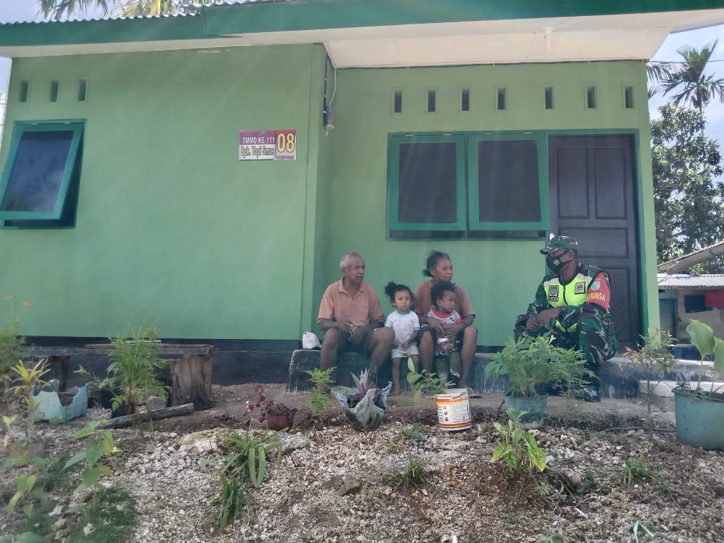 Kali ini, Serka Alex Sembra memanfaatkan teras rumah TMMD milik Mananwir Yopi Smas sebagai saranan untuk berkomunikasi kepada Keluarga Bapak Yopi Smas.