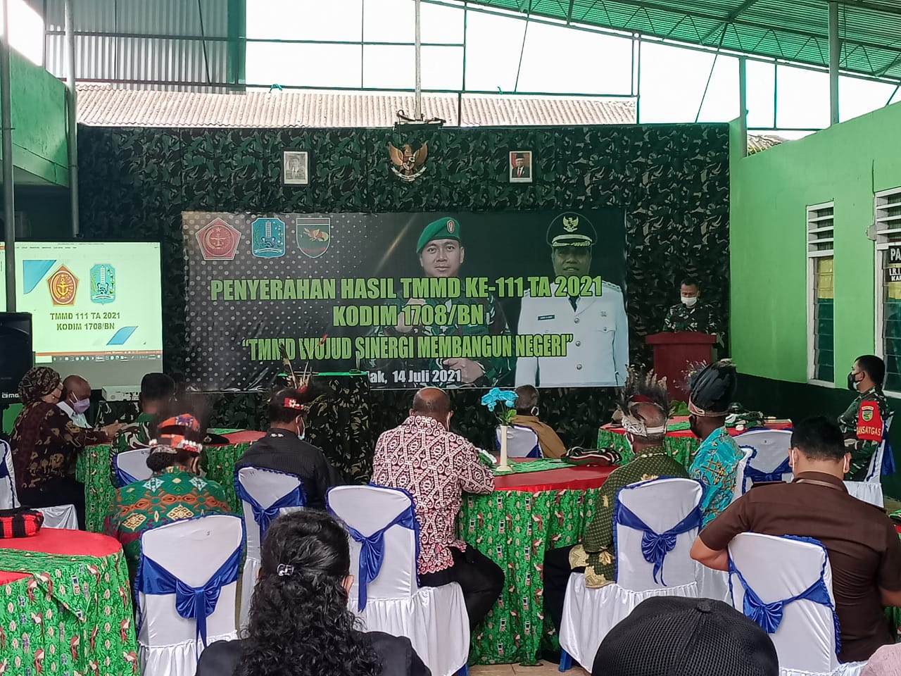 KeizalinNews.com Biak — Program Tentara Manunggal Membangun Desa (TMMD) Ke-111 Kodim 1708/BN Tahun 2021 secara resmi ditutup.