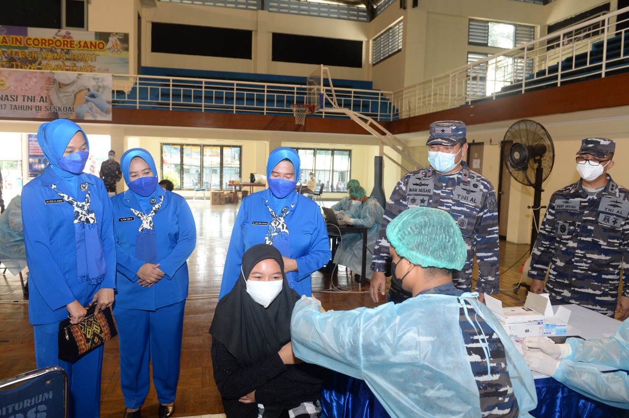 Turut meninjau pelaksanaan vaksinasi Wadan Seskoal Laksamana Pertama TNI Imam Musani, S.E., M.Si., M.Tr.Opsla., Seklem Seskoal Kolonel Laut (S) Untung Purnomo, S.E., M.Psi., CFrA., Dandenma Seskoal Letkol Marinir Jumino, M.Tr (Hanla)., Kasatkes Seskoal Letkol Laut (K) dr.Syarif Mustika Harinurdi, Sp.B., M.Tr.Opsla., Kepala Puskesmas Kebayoran Lama Rully D.Anggreini dan dr.Indah Dwi Rizki, Wakil Ketua CBS Jalasenastri Seskoal Ny.Anik Imam Musani dan perwakilan pengurus CBS Jalasenastri.
