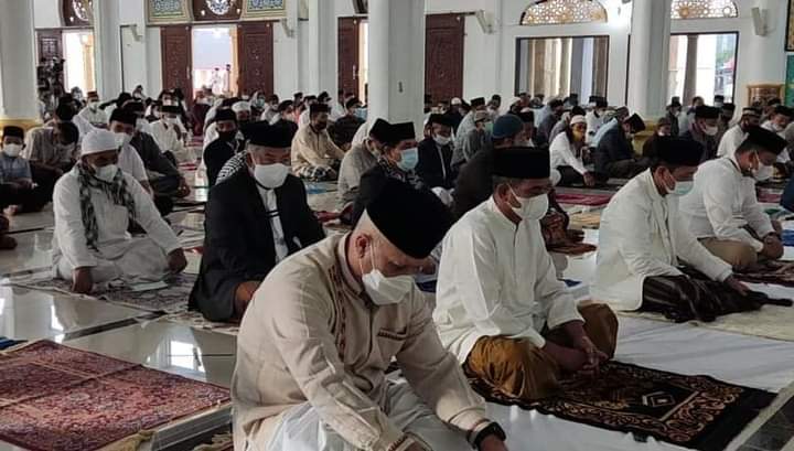 Keizalinnews.com|Takengon – Bupati Aceh Tengah Shabela Abubakar, didampingi Sekretaris Daerah dan jajaran unsur pimpinan daerah Kabupaten Aceh Tengah, melaksanakan ibadah Shalat Idul Adha di Masjid Raya Ruhama’ Takengon, Selasa (20/7/2021).