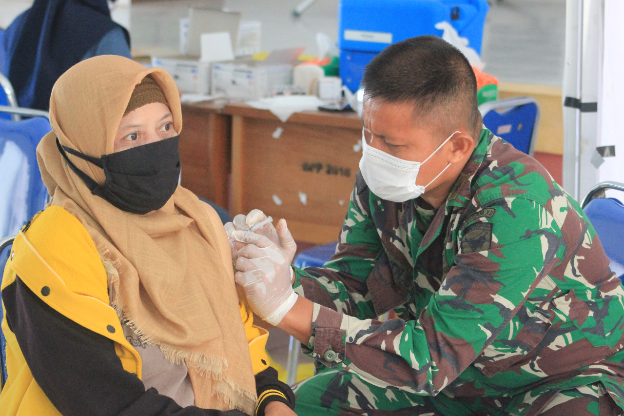 Vaksinasi ini dilaksanakan tenaga kesehatan atau vaksinator dari Rumkit TNI AD dan Dinas Kesehatan Kota Palangka Raya.