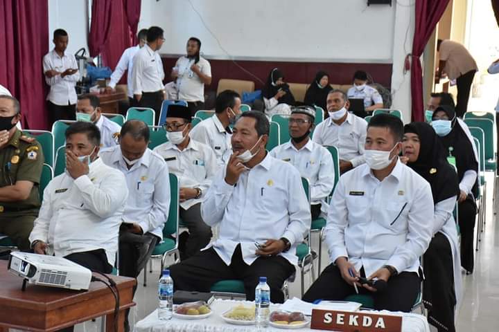 Keizalinews.com | Redelong, : Pelaksana Tugas Bupati Bener Meriah Dailami yang diwakili oleh Sekda Drs. Haili Yoga. M.Si mengikuti rapat koordinasi terkait penyiapan dan penyempurnaan instrumen pelayanan seluruh SKPK di jajaran Pemkab Bener Meriah dengan Deputi Pelayanan Publik Kementerian Pan-RB Republik Indonesia melalui aplikasi zoom meting di Aula Setdakab Bener Meriah, Rabu (28-07-2021)