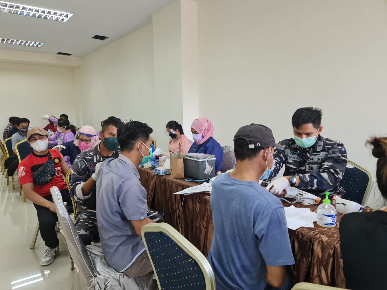 KeizalinNews.com Batam — Keseriusan TNI Angkatan Laut dalam hal ini Pangkalan TNI Angkatan Laut Batam (Lanal Batam) untuk menekan penyebaran Covid-19, bersama dengan Dinas Kesehatan (Dinkes) Kota Batam, kembali menggelar Serbuan Vaksin Covid-19 Untuk Mayarakat Maritim Kota Batam yang berlangsung di Lapangan Parkir Anggrek Sari Kota Batam Kepulauan Riau, Rabu pagi (28/7/2021).