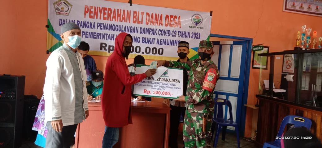 Keizalinnews.com |Takengon- Babinsa Koramil 06/jagung kodim 0106/Ateng Sertu Zulil Fajri menghadiri penyerahan bantuan langsung tunai (BLT) tahap 3 (dua) bertempat di Desa Bukit Kemuning kecamatan Jagong Jeget Kab. Aceh Tengah