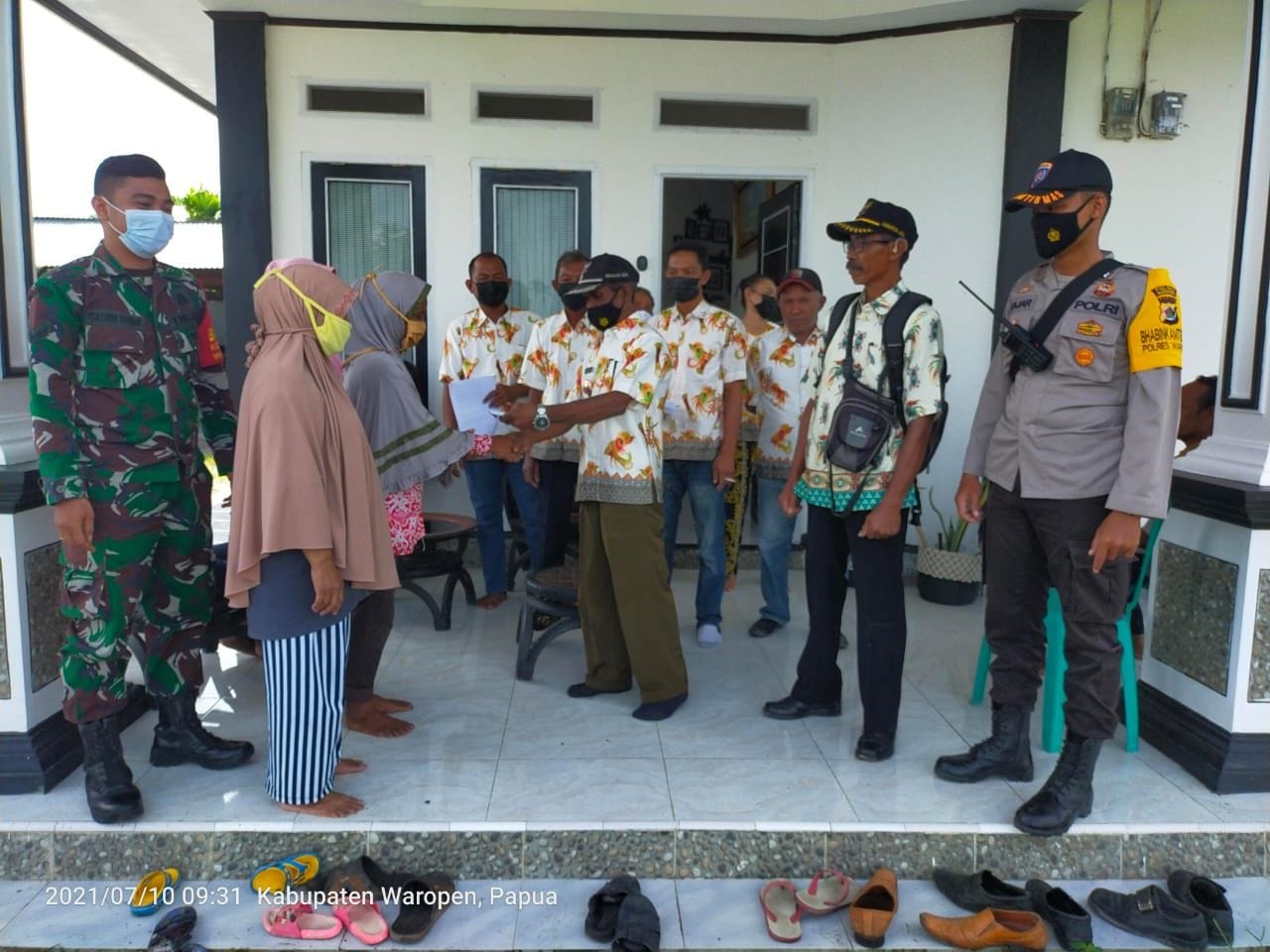 KeizalinNews.com Waropen — Untuk memastikan Pembagian BLT (Bantuan langsung tunai) tepat sasaran dan dapat diterima langsung oleh warga, Sertu Calvin Kemis Babinsa Koramil 1709-03/Warbah Kodim 1709/Yawa bersama Bhabinkamtibmas Briptu Fajar mengawal dan membantu aparat kampung melakukan pembagian BLT laangsung kerumah-rumah warga binaannya yang ada di Kampung Khemon Jaya Distrik Urei Faisei Kabupaten Waropen, Senin (09/08/2021).