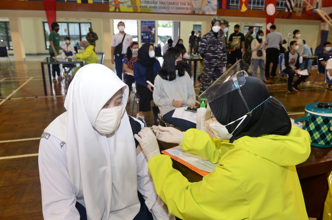 KeizalinNewa.com Jakarta — TNI Angkatan Laut Seskoal Sebagai Sentra Vaksinasi Pelajar terus berlanjut melaksanakan serbuan vaksinasi covid-19 untuk remaja usia 12-17 tahun dan telah memasuki dosis Tahap Kedua di Sekolah Staf dan Komando TNI Angkatan Laut (Seskoal) yang dilaksanakan di Gedung Olahraga (GOR) M.Romly Seskoal, Cipulir, Jakarta Selatan, Kamis (10/08/2021).