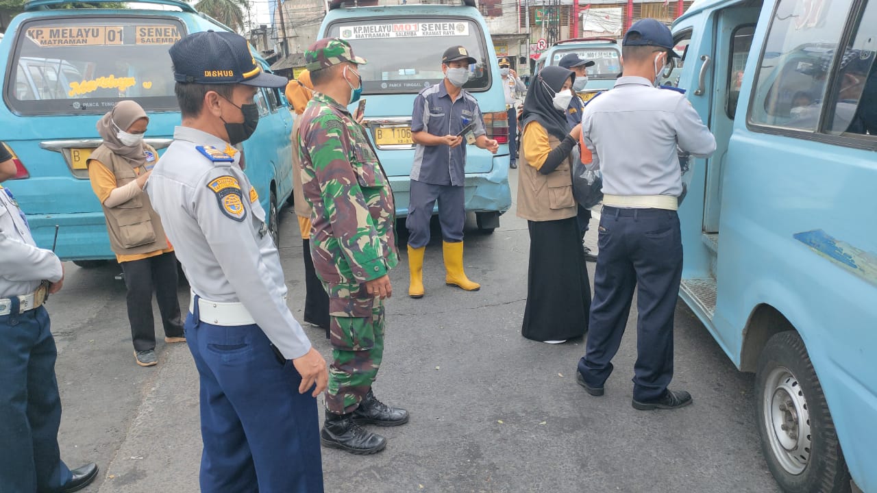 Babinsa Serka Amin, Serda Ali, Serda Rustam, Kopda Azwar bersama Petugas gabungan empat pilar Kecamatan Jatinegara dan petugas BNPB membagikan 1500 masker di tiga lokasi yaitu depan Masjid Al-Fatah Jln. Jatinegara timur, Terminal Bus Kampung Melayu