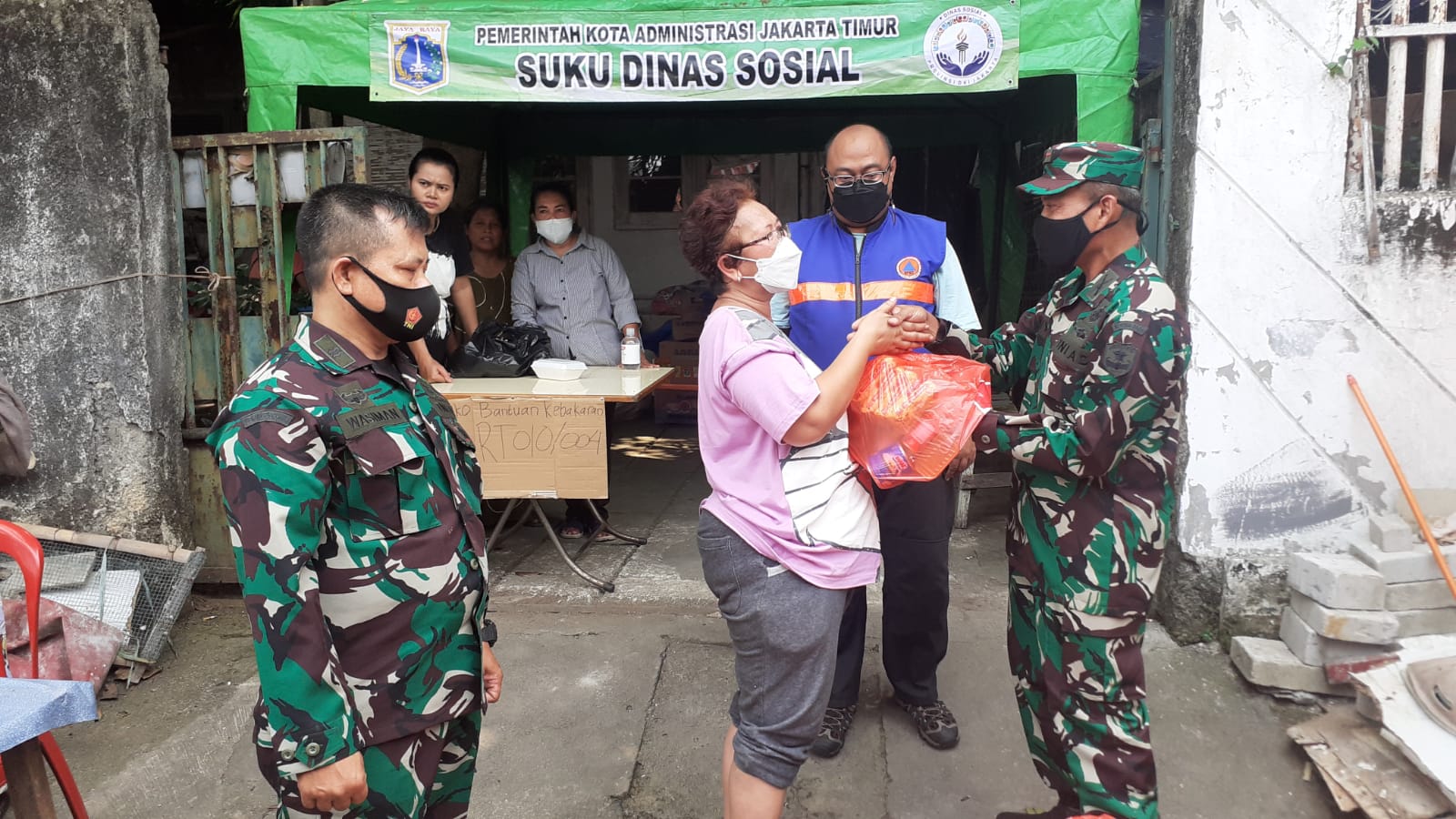 Danramil 02/Matraman Mayor Inf Dasiya mengatakan, bantuan yang kita berikan berupa Beras, masker dan sembako ini untuk warga korban kebakaran dilingkungan RT.010/04 Kebon Manggis.