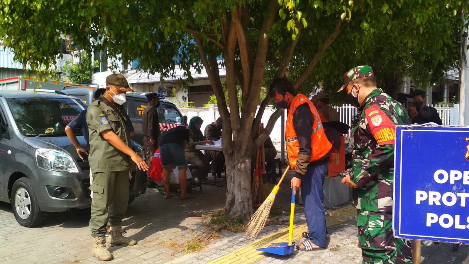 Ditempat terpisah Danramil 02/TB Kapten Inf Arja Suarja menyebutkan 15 orang pelanggar kedapatan tidak menggunakan masker,Dan oleh petugas di berikan sanksi sosial berupa membersihkan Fasilitas umum