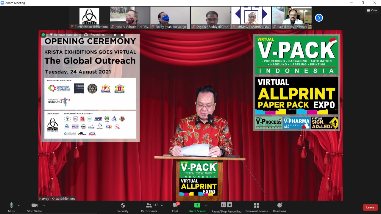 Adapun kelima pameran tersebut yaitu, Virtual Pack Indonesia Expo, Virtual Process Indonesia Expo, Virtual Pharma Indonesia Expo, Virtual ALL Print Paper Pack Expo, Virtual Sign, Ad & LED’s Expo 2021.