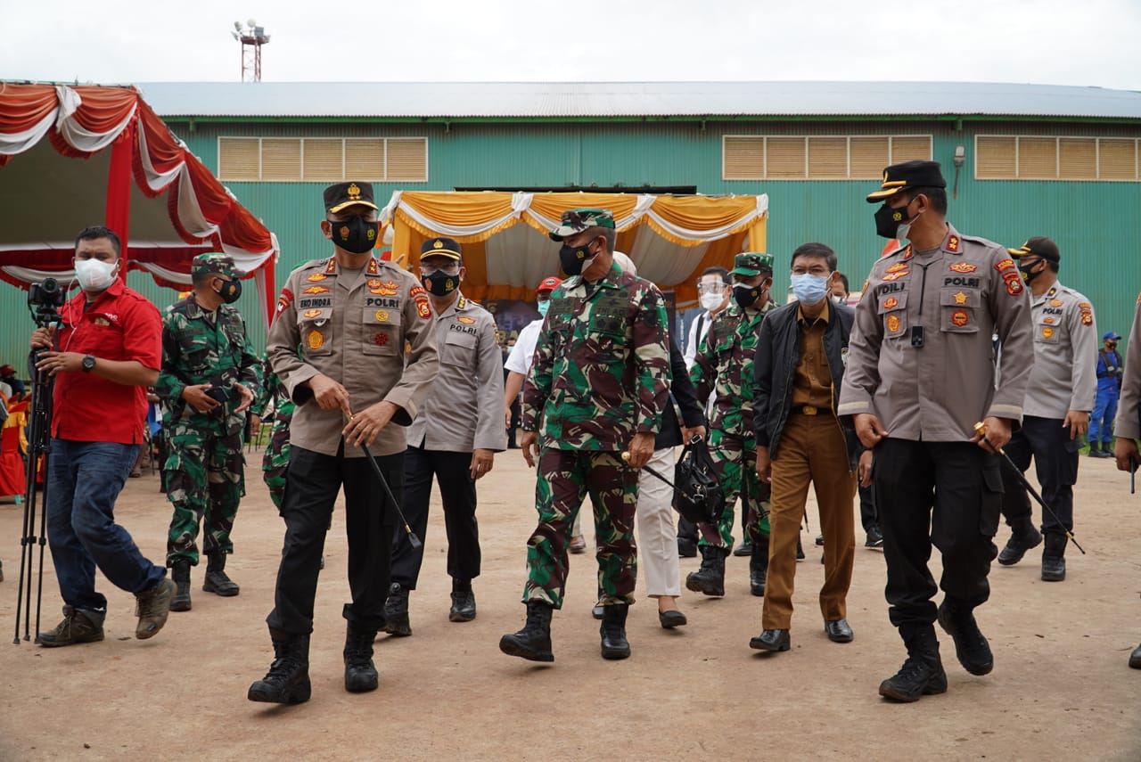 Saat tiba di lokasi PT. OKI Pulp And Paper, sekitar pukul. 09.15 WIB, Pangdam II/Swj dan Kapolda Sumsel beserta rombongan langsung disambut oleh Pimpinan PT. OKI Pulp And Paper, Bapak Efendy, Dandim 0402/OKI Letkol Czi Zamroni, Kapolres OKI AKBP Diliyanto, SIK., Danramil 402-13/Air Sugihan Kapten Inf Fathul, Kapolsek Air Sugihan Ipda Indra Gunawan, Kasat Polairud Iptu Amir Fauzi dan Camat Air Sugihan Bpk. Hadi S. Sos.