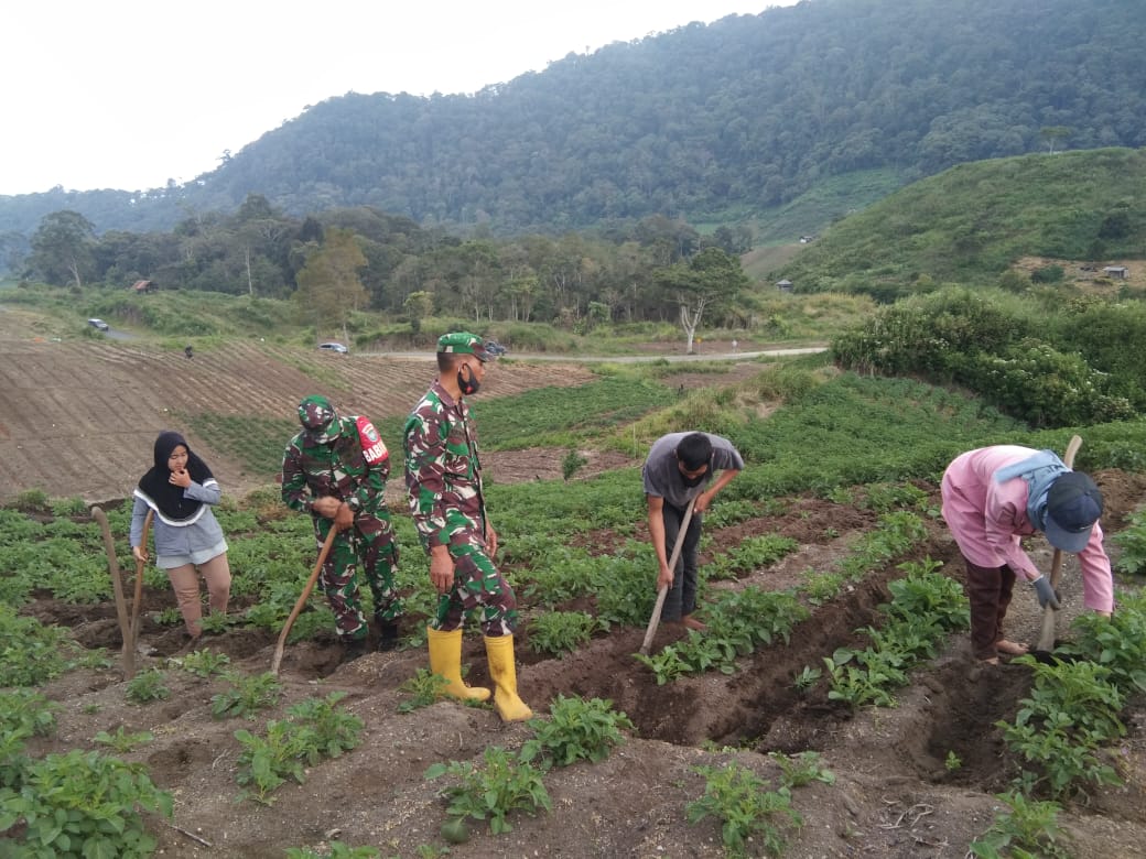 Disela-sela kegiatan babinsa 02/bebesen Serda Kasnari menyampaikan bahwa tindakan dini dalam upaya menghindari kerugian bagi petani, pertumbuhan tidak hanya dengan pupuk yang diberikan serta disemprot saja, tetapi rumput di sekeliling tanaman kentang juga harus selalu dibersihkan sehingga dapat makanan pada tanaman dan tidak diserap oleh gulma atau rumput pengganggu