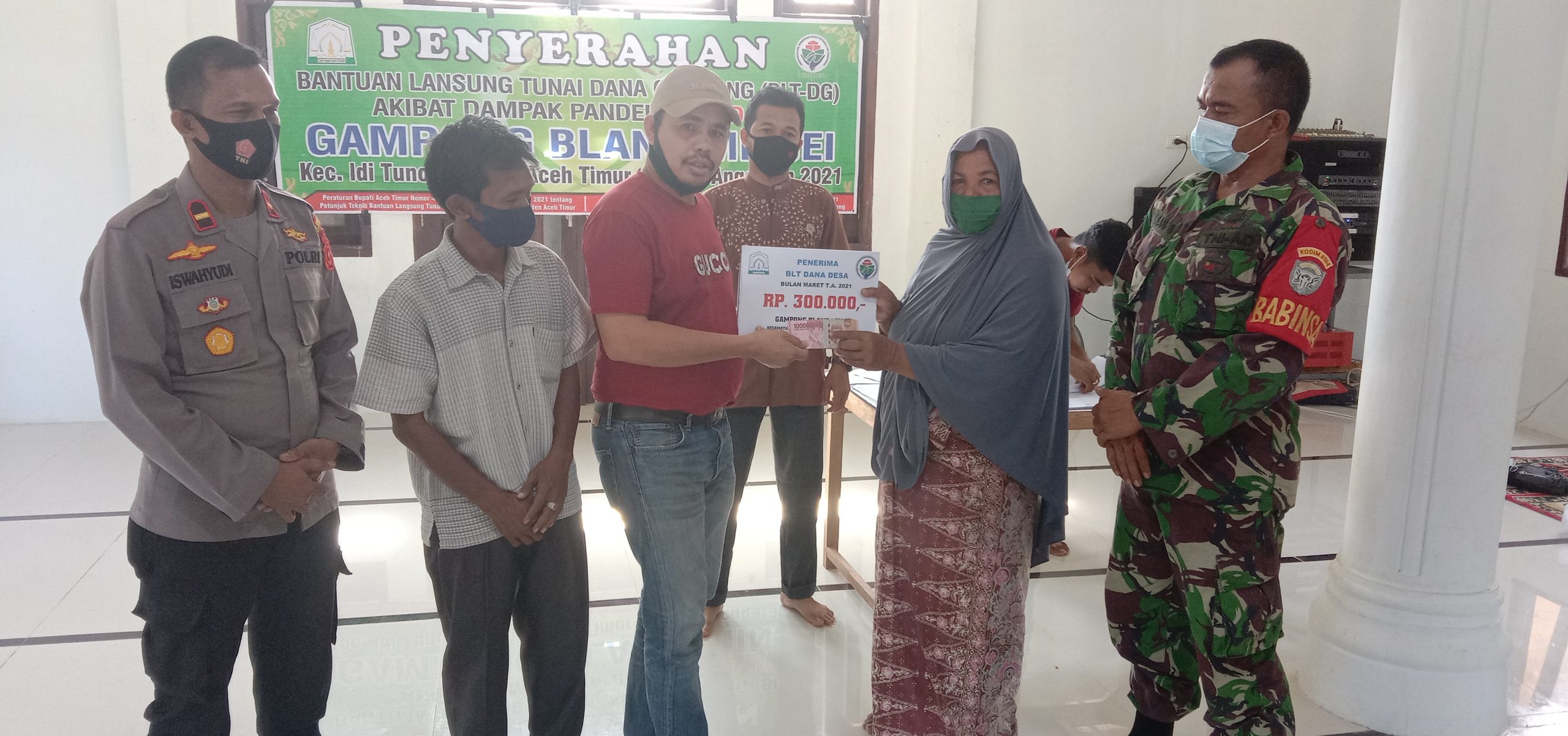 Turut hadir dalam pembagian BLT-DD hari ini diantaranya kapolsek idi tunong Ipda.iswahyudi danramil 17/idt diwakili oleh bhabinsa serma anas sedangakan dari kecamatan diwakili oleh kasi DPMG pak ferizall ST. dan PLD marbawi S.ST