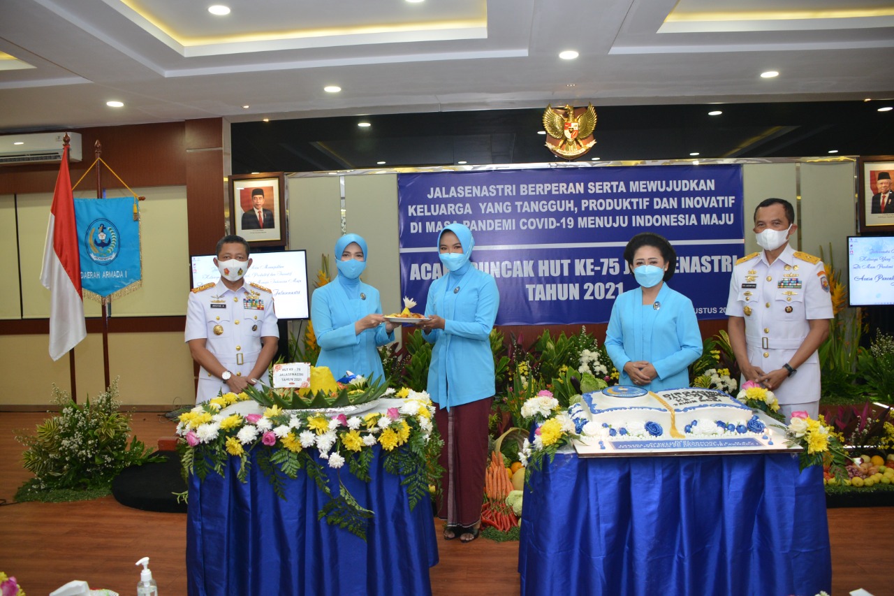 Sementara itu, Ketua Daerah Jalasenastri Armada I Ny. Ifa Arsyad Abdullah membacakan sambutan Ketua Umum Jalasenastri Ny. Vero Yudo Margono bahwa memasuki usia ke-75 tahun bukanlah waktu yang singkat, dan merupakan perjalanan panjang pengabdian Jalasenastri sebagai Organisasi istri prajurit TNI Angkatan Laut, yang telah turut berperan dalam upaya membantu meningkatkan kesejahteraan Prajurit TNI Angkatan Laut beserta keluarganya, karena Jalasenastri sebagai organisasi sosial tetap konsisten meningkatkan kepedulian sosial baik di bidang pendidikan, budaya, kesehatan dan ekonomi.