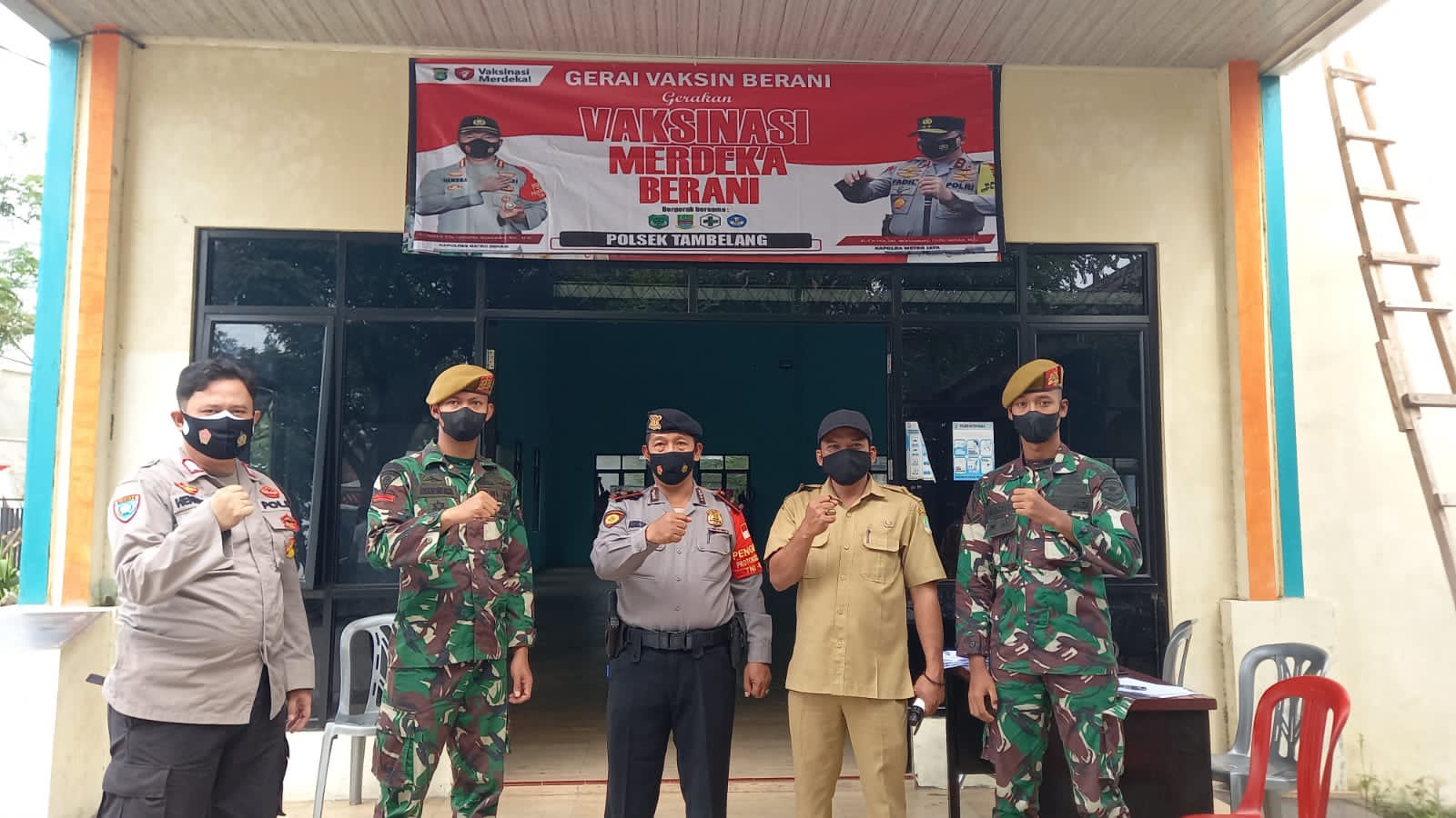 Bekasi KEIZALINNEWS -Polsek Tambelang, Polres Metro Bekasi gelar kegiatan Gerai 98 Polsek Tambelang Vaksinasi Merdeka Berani, Polres Metro Bekasi Dosis Ke I untuk masyarakat umum di Desa Sukawijaya, Wilkum Polsek Tambelang yang berlangsung di Kampung Balong Gubug, Rt. 003/Rw. 002, Desa Sukawijaya, Kecamatan Tambelang, Kabupaten Bekasi, Kamis (02/09/2021).