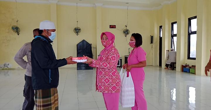 Pemberian bantuan sosial kepada masyarakat berupa makanan oleh ketua Bhayangkari Cabang SBB diwakili Ny. Nur Musaad. Selasa ( 7/9).