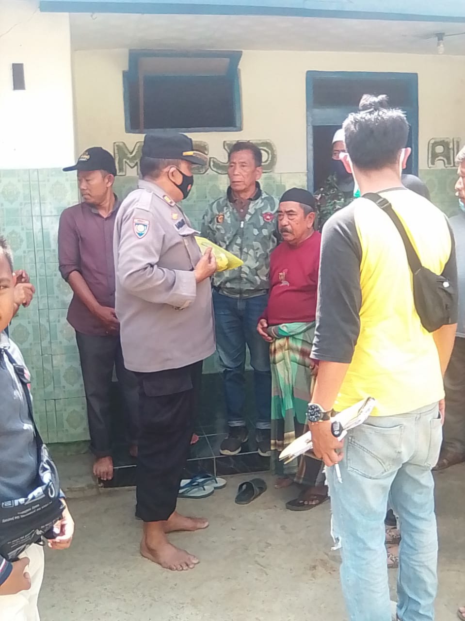 Setelah selesai di shalat kan di mesjid musholah Al-Hikmah di Kp.Bantar sari 10 Desa Cangkuang Rancaekek Bandung.seorang petugas kepolisian menyerah kan bantuan kepada perwakilan rakyat daerah Cangkuang Rancaekek Bandung.