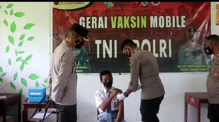 SBB,MALUKU,KEIZALINNEWS,Com,- Dalam rangka percepatan pelaksanaan Vaksinasi COVID-19, Polres SBB melaksanakan Gerai Vaksinasi Mobile disekolah sasarannya bagi para pelajar yang berusia 12 – 17 Tahun. Dan SMA Negeri 3 Seram Barat yang pertama dilaksanakan Vaksinasi Covid-19.