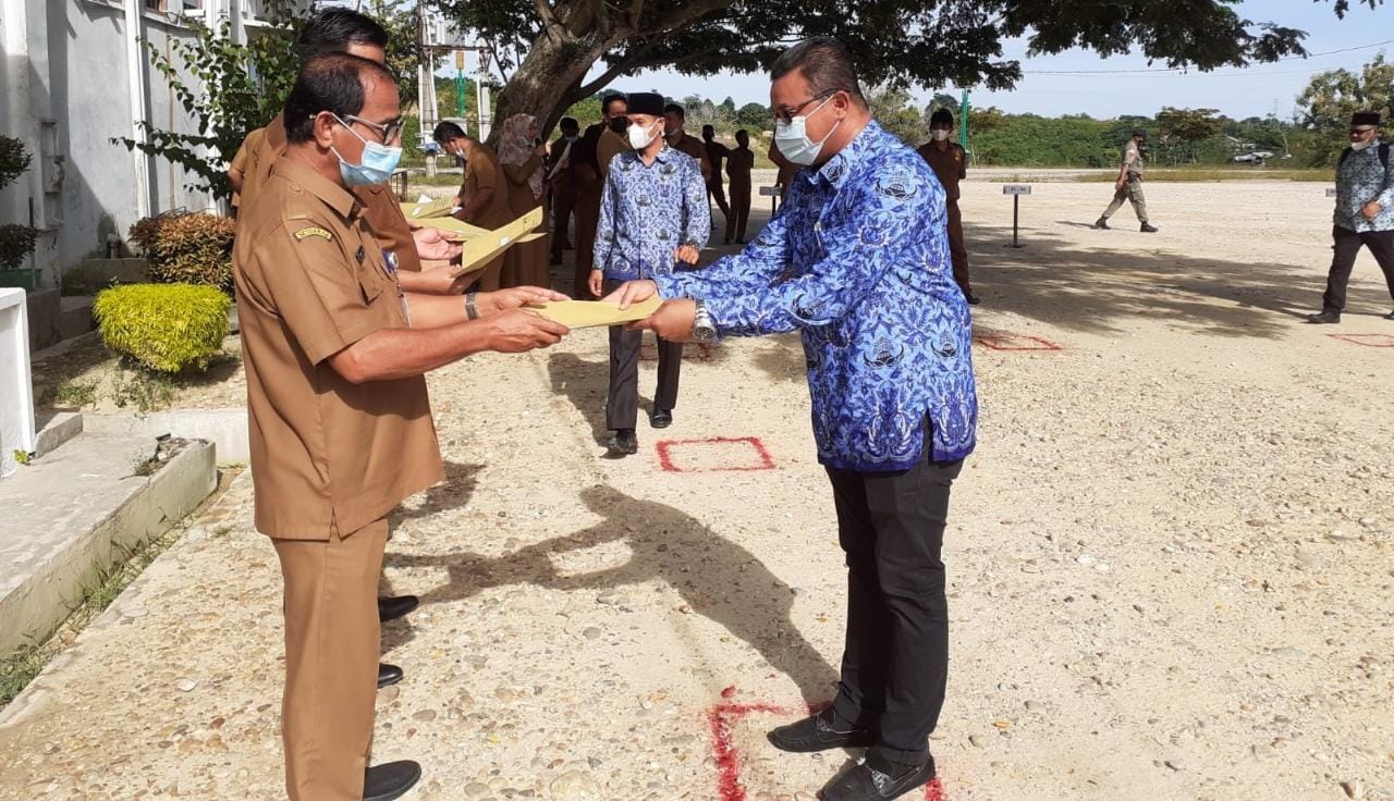 KeizalinNews Bupati Aceh Timur, H. Hasballah bin H. M Thaib, SH melalui Sekretaris Daerah (Sekda) setempat Ir Mahyuddin M.Si menyerahkan piagam penghargaan secara simbolis kepada 391 Aparatur Sipil Negara (ASN). Selasa (21/9/2021).