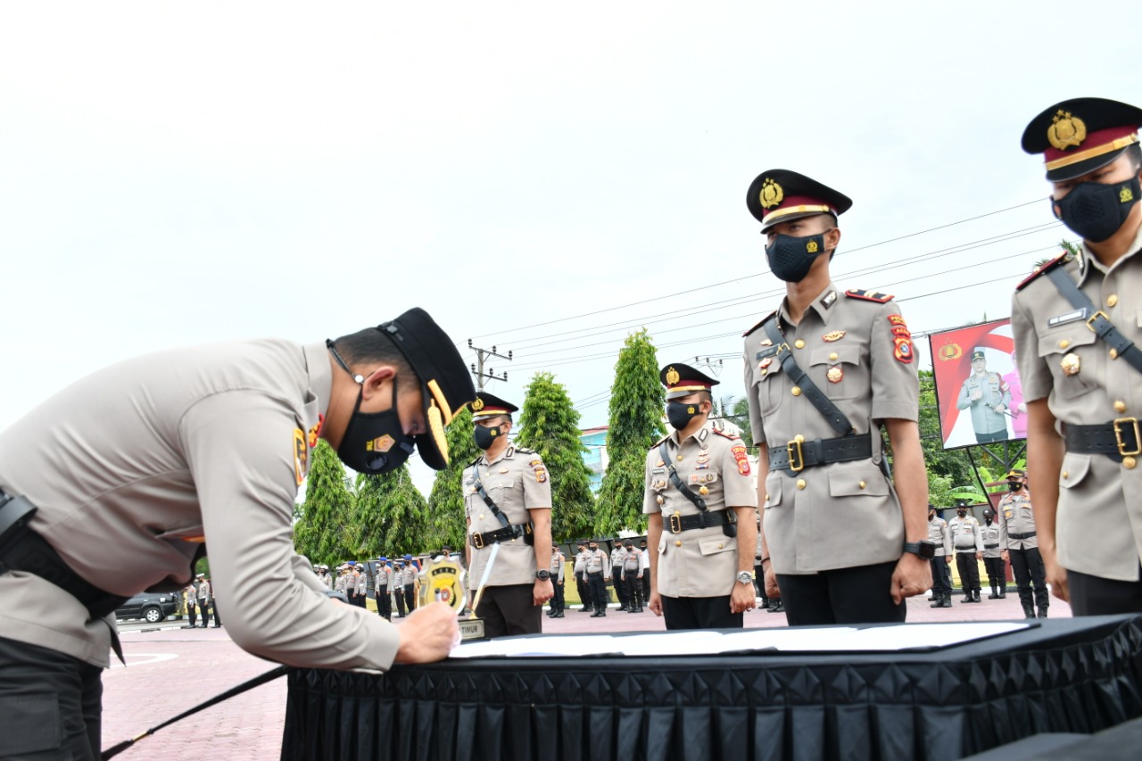 Perlu disadari bahwa jabatan merupakan amanah yang diberikan oleh negara kepada kita, sehingga mengandung konsekuensi logis untuk dilaksanakan dengan sebaik-baiknya dan dipertanggung jawabkan baik kepada organisasi, masyarakat maupun kepada Allah SWT. Oleh karena itu kepada pejabat yang telah melaksanakan serah terima jabatan agar dapat mensyukuri dan melaksanakan jabatan tersebut secara ikhlas dan penuh rasa tanggung jawab. Terima kasih kepada pejabat lama dan selamat bergabung dengan Polres Aceh Timur kepada pejabat yang baru, segera sesuaikan diri dengan wilayah maupun kesatuan.