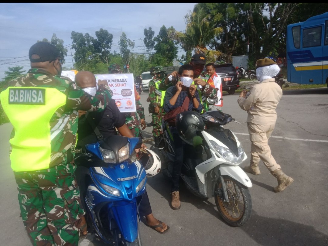 Kegiatan tersebut dimulai dari pertigaan jalan angkasa dan majapahit dengan membagikan masker kepada warga yang sedang melintas di area tersebut, Pembagian masker yang diberikan secara gratis kepada para pengendara roda dua dan roda empat serta pejalan kaki. Harapannya walaupun beraktifitas bekerja akan tetapi harus tetap disiplin dan mematuhi protokol kesehatan yang salah kata Serda Baldus Soyem yang tak bosan selalu menghimbau kepada warganya.