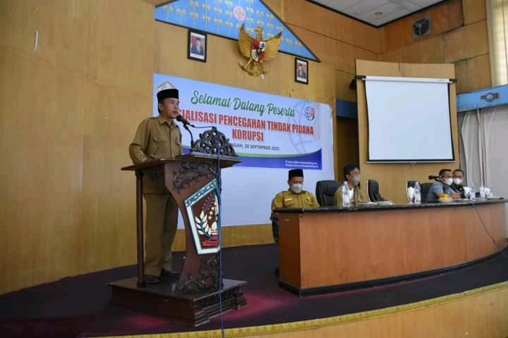Keizalinnews.com|Redelong– Bupati Aceh Tengah melalui Staf Ahli Bidang Pembangunan, Ekonomi dan Keuangan M. Thamrin Elashri MA, membuka acara Sosialisasi Pencegahan Tindak Pidana Korupsi bagi aparatur pemerintahan di Kabupaten Aceh Tengah, Selasa (28/09).