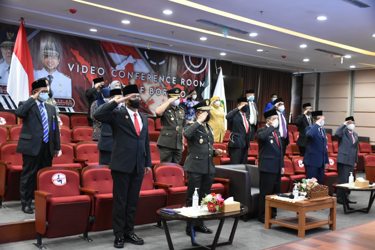KeizalinNews.com Samarinda — Wakil Gubernur Kaltim Hadi Mulyadi dan Danrem 091/ASN Brigjen TNI Cahyo Suryo Putro  beserta jajaran Forkopimda Kaltim mengikuti Upacara Peringatan Hari Kesaktian Pancasila 2021 secara online di ruang Heart of Borneo (HoB) lantai 2 Kantor Gubernur Kaltim, Jum’at (1/10/2021).