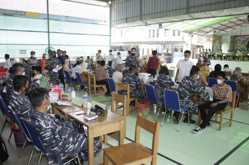 Para Siswa di Pondok Pesantren Mts Daarul Falah sangat antusias mengikuti serbuan vaksinasi yang menyediakan sebanyak 1400 vaksin ini. (Hera)