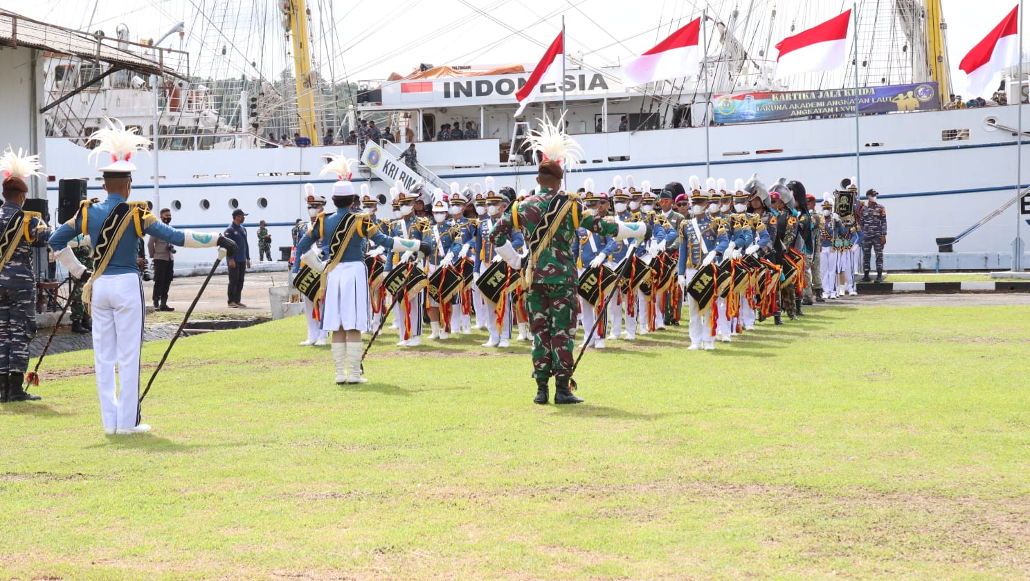 KeizalinNews.com Sabang — Drum Band Genderang Suling Gita Jala Taruna AAL Angkatan 68 Tahun 2021 menampilkan atraksi di dermaga Lanal Sabang, Jalan Malahayati Gampong Kebun Merica Kelurahan Kuta Barat Bawah Kecamatan Sukakarya Kota Sabang, Kamis siang (07/10/2021).