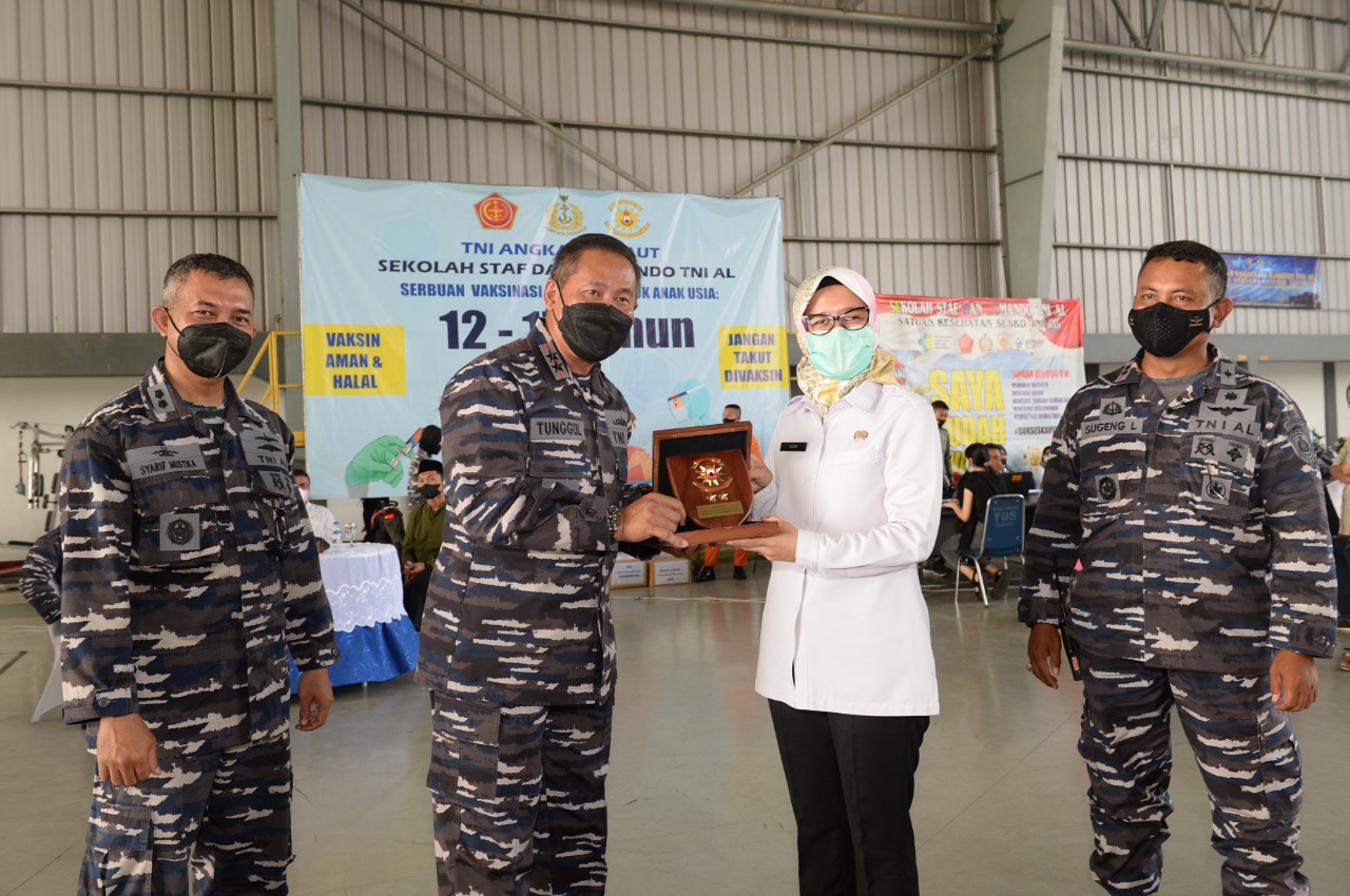 TNI AL SESKOAL BERSAMA LANUDAL JAKARTA LAKSANAKAN SERBUAN VAKSINASI MARITIM UNTUK ANAK USIA 12-17 TAHUN DAN MASYARAKAT UMUM WILAYAH TANGERANG SELATAN.