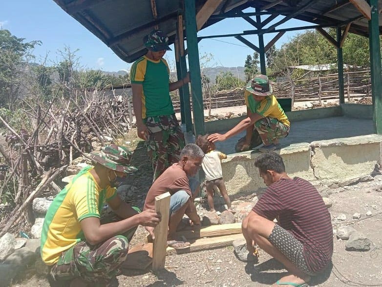“Dalam kegiatan pembersihan dan perehaban Posyandu ini, masyarakat dengan berbagai kekurangan dan keterbatasannya tidak menjadi alasan untuk kita tidak melakukan apa-apa, justru dengan keterbatasan tersebut menjadikan acuan untuk kita melakukan hal yang positif dan berguna bagi masyarakat,” ujar Danpos Oelbinose Serka Lazalia. (Penkostrad).