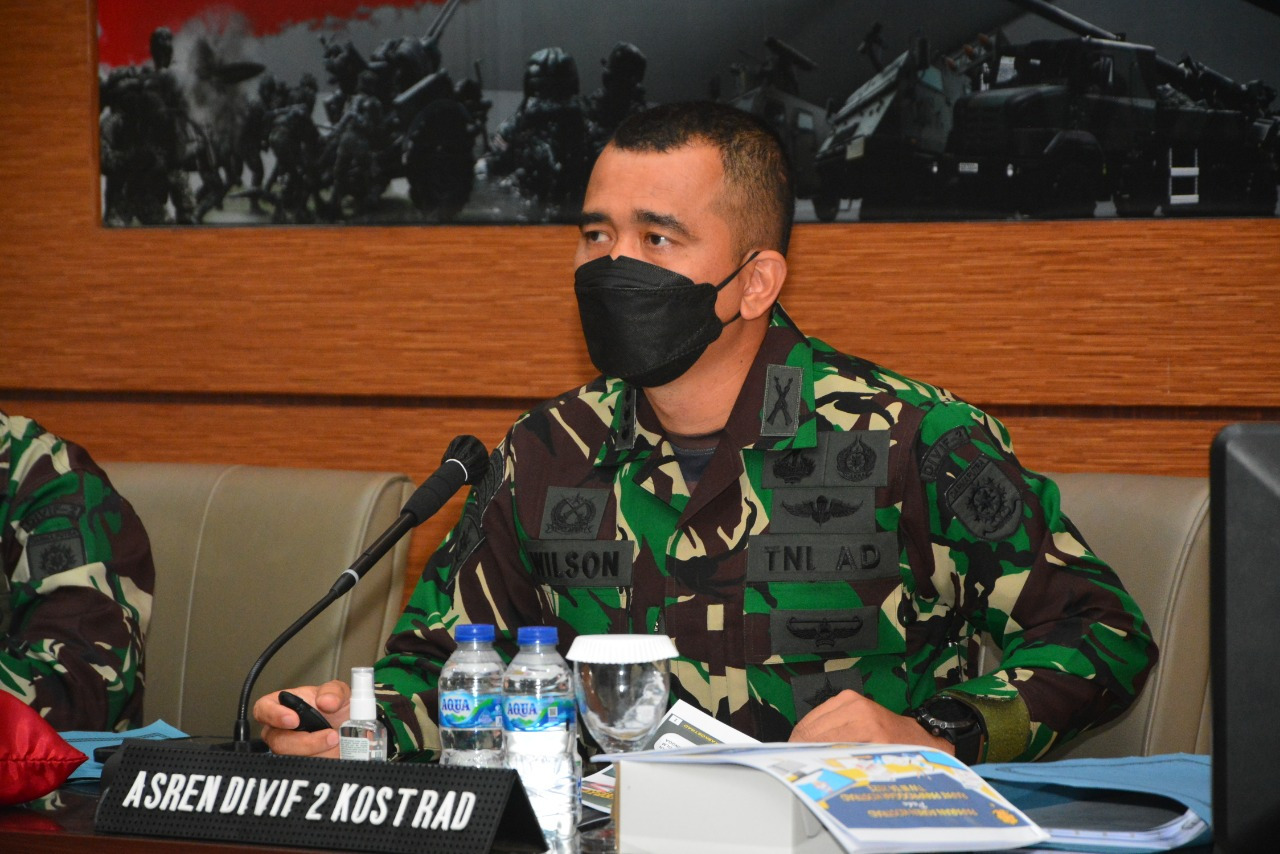 KeizalinNews.com Jakarta — Asisten Perencanaan Divisi Infanteri 2 Kostrad Kolonel Inf Wilson Napitupulu, S.IP., mengikuti Video Conference dalam rangka Rapat Panproggar Kostrad Triwulan III TA 2021 bertempat di Ruang Yudha Madivif 2 Kostrad, Malang. Kamis (14/10/2021).
