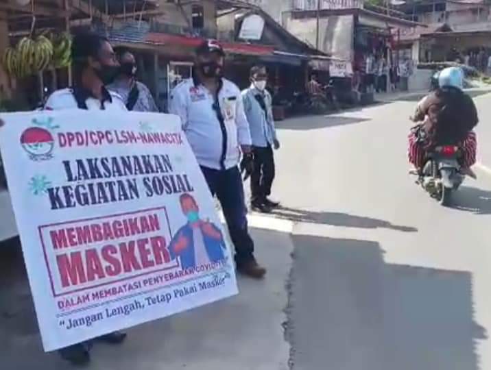 Keizalinnews.com-Gunungsitoli, Media KeizalinNews.com, Jumat 15/10/2021 LSM Nawacita Melaksanakan Kegiatan Pembagian Masker yang bertempat di Desa Sihare,o II Tabaloho Kecamatan Gunungsitoli Kota Gunungsitoli, dengan sasaran Masyarakat yang tidak memakai masker yang melintasi jalur jalan Umum menuju Kota Gunungsitoli.