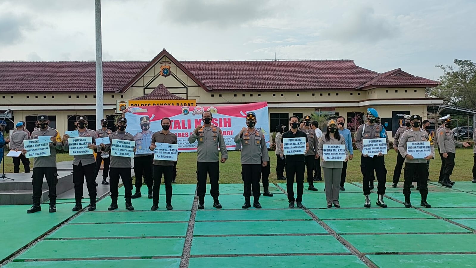 KeizalinNews.Com Ditengah pamdemi Covid-19, Polres Bangka Barat dalam bentuk kepedulian pimpinan kepada anggotanya , Kapolres Bangka Barat pemberian tali kasih kepada Seluruh Anggota Polres Bangka Barat dengan cara undian, Selasa (19/10/2021).