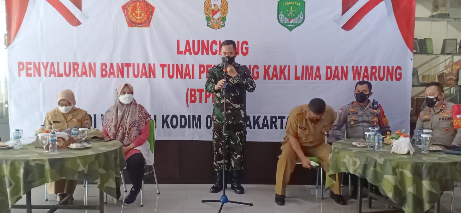 KeizalinNews.com Jakarta Timur — Ratusan pedagang kaki lima yang ada di wilayah Kodim 0505/JT yang meliputi 10 Kecamatan mendapat bantuan dari Pemerintah pusat melalui Program Bantuan Tunai untuk Pedagang Kaki Lima dan Warung (BTPKLW). Masing – masing pedagang menerima bantuan sebesar Rp 1.200.000.
