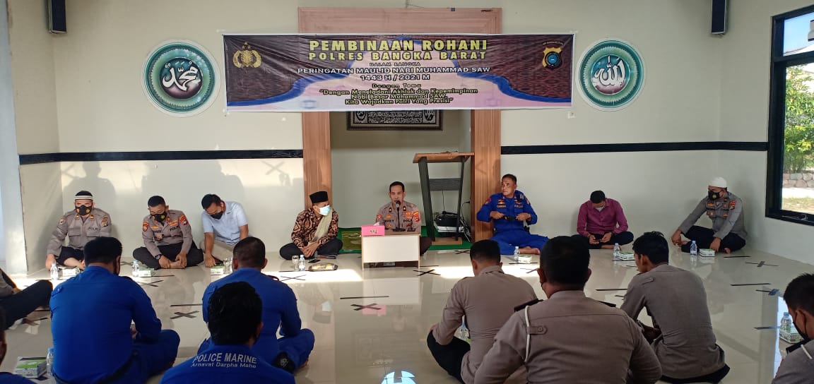 KeizalinNews.Com -Polres Bangka Barat menggelar peringatan Maulid Nabi Muhammad SAW 1443 H/2021 M di Masjid Ar Rahman Polres Bangka Barat, Kamis (21/10/2021)
