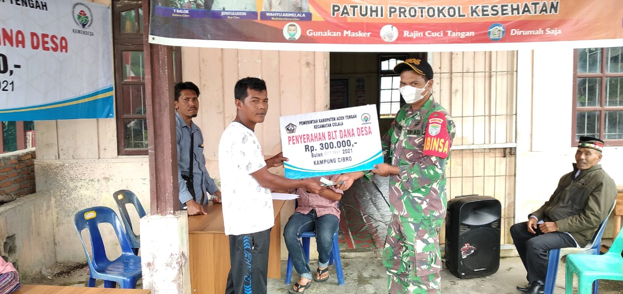 Keizalinnews.com|Takengon– Babinsa Koramil 10/celala kodim 0106/ateng serda hendra feriza menghadiri pembagian BLT bertempat di kantor desa.kuyun uken kec.celala, kab, Aceh Tengah. Saptu (22/10/21).