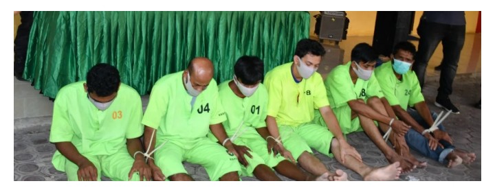 Pasal yang dipersangkakan kepada pelaku yakni Pasal 50 Qanun Aceh Nomor 6 Tahun 2014 tentang Hukum Jinayat dengan ancaman hukuman ‘Uqubat Ta’zir cambuk paling sedikit 150 kali, atau paling banyak 200 kali, atau denda paling sedikit 1.500 gram emas murni dan paling banyak 2.000 gram emas murni, atau penjara paling singkat 150 bulan dan paling lama 200 bulan.