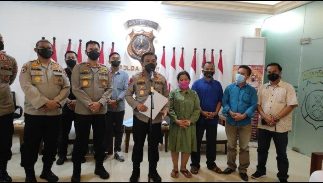 Keizalinnews.com,Medan-Kapolda Sumut Irjen Pol RZ Panca Putra Simanjuntak saat melakukan konferensi pers terkait pencabutan status tersangka terhadap Liti Wari Iman Gea, Jumat (22/10/2021) malam.