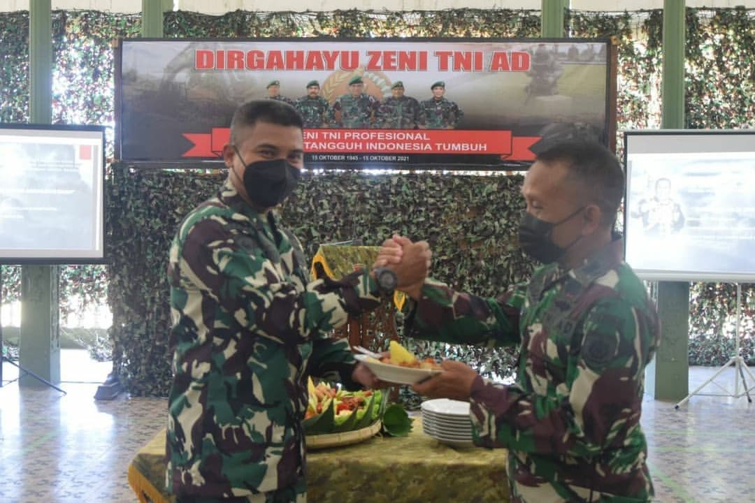 Acara HUT Ke-76 Zeni TNI AD dilanjutkan dengan pemotongan tumpeng dan diakhiri dengan acara ramah tamah. (Penkostrad).