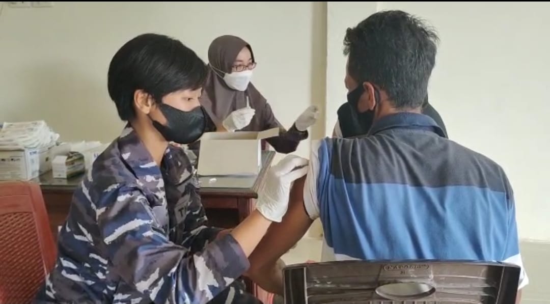 KeizalinNews.com Babel — Pangkalan TNI AL Bangka Belitung melalui Balai Kesehatan bekerjasama dengan Dinas Kesehatan Kabupaten Bangka dan Puskesmas Belinyu kembali melaksanakan Serbuan Vaksinasi dosis pertama dan kedua kepada masyarakat maritim di Kantor Desa Gunung Pelawan Kecamatan Belinyu Kabupaten Bangka, Jum’at (22/10/2021).