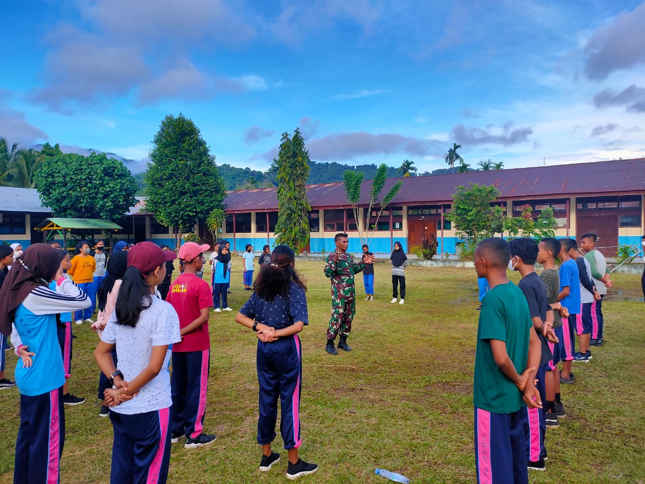 KeizalinNews.com Yapen – Berlokasi di Lapangan SMPN 2 Serui, Serda Sofyan Karim Babinsa Koramil 1709-02/Yapen Selatan Kodim 1709/Yawa, memberikan Pelatihan PBB (Peraturan Baris Berbaris) kepada siswa-siswi SMPN 2 Serui Kab. Kepulauan Yapen, Senin (25/10/2021).