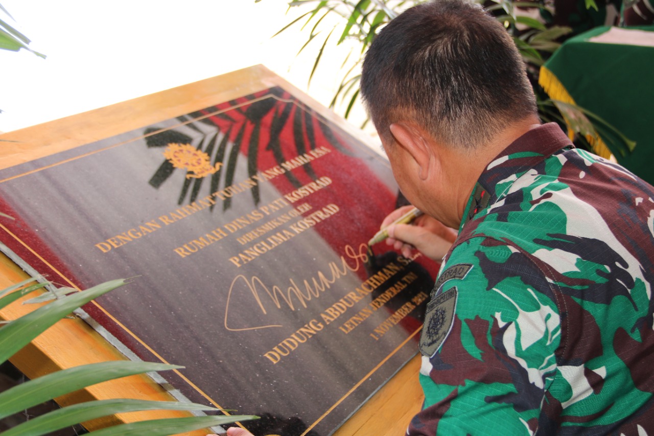 Acara peresmian rumah dinas Pati Makostrad diawali sambutan dari Pangkostrad sekaligus pernyataan peresmian, penandatanganan Prasasti, pengguntingan Pita dan penyerahan secara simbolis.