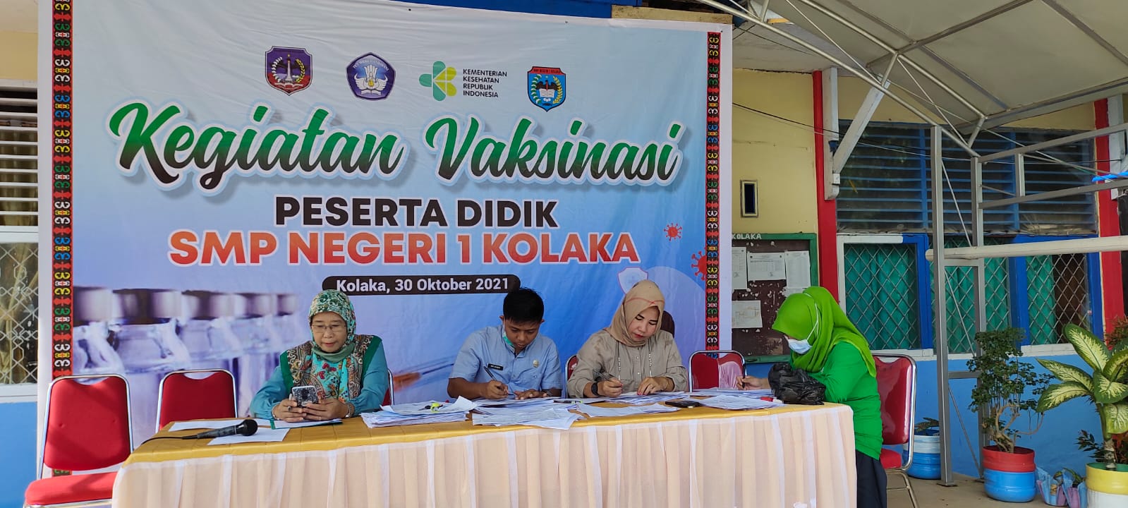 KeizalinNews.Com – Kab.Kolaka -Kegiatan Vaksinasi Covid-19 , Di gelar oleh Sekolah menengah pertama (SMP) negeri 1 kolaka di bantu oleh tenaga medis puskesmas kolaka di hslaman teras sekolah di kabuoaten kolaka, Provinsi Sulawesi tenggara (30/11/21) sore