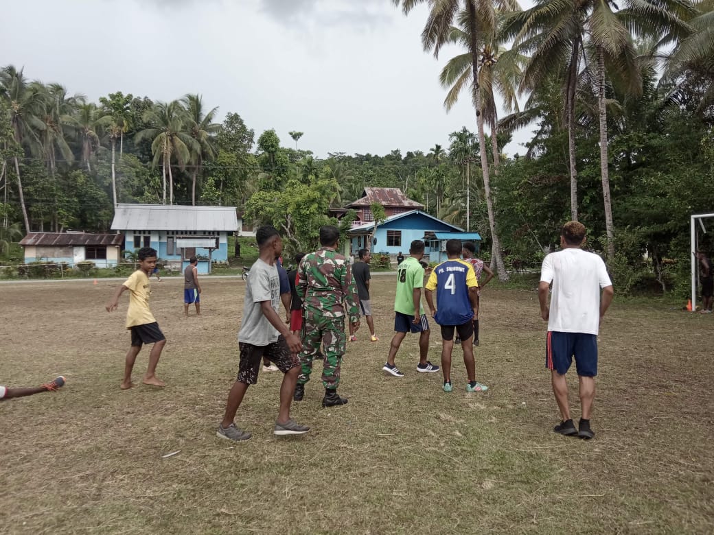 Tidak hanya berkomunikasi secara langsung terhadap aparat pemerintahan desa atau tokoh- tokoh masyarakat saja, tetapi para pemuda juga merupakan sasaran penting dalam pembinaan teritorial, yakni dengan datang berkomunikasi sekaligus melaksanakan kegiatan olah raga sepak bola bersama, “terang Babinsa.